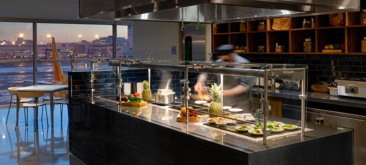 The Lounge is located post-security in Concourse C just past Gate C46 on the mezzanine level. Accessible to all gates in Concourses A, B and C – passengers must take train to reach Concourse C.